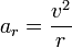 where ar is centripetal acceleration, v is velocity and r is the radius of the circular path. This shows that two roller coaster cars entering two loops of different size at the same speed will experience different acceleration forces: the car in the tighter loop will feel greater acceleration while the car in the wider loop will feel less acceleration.